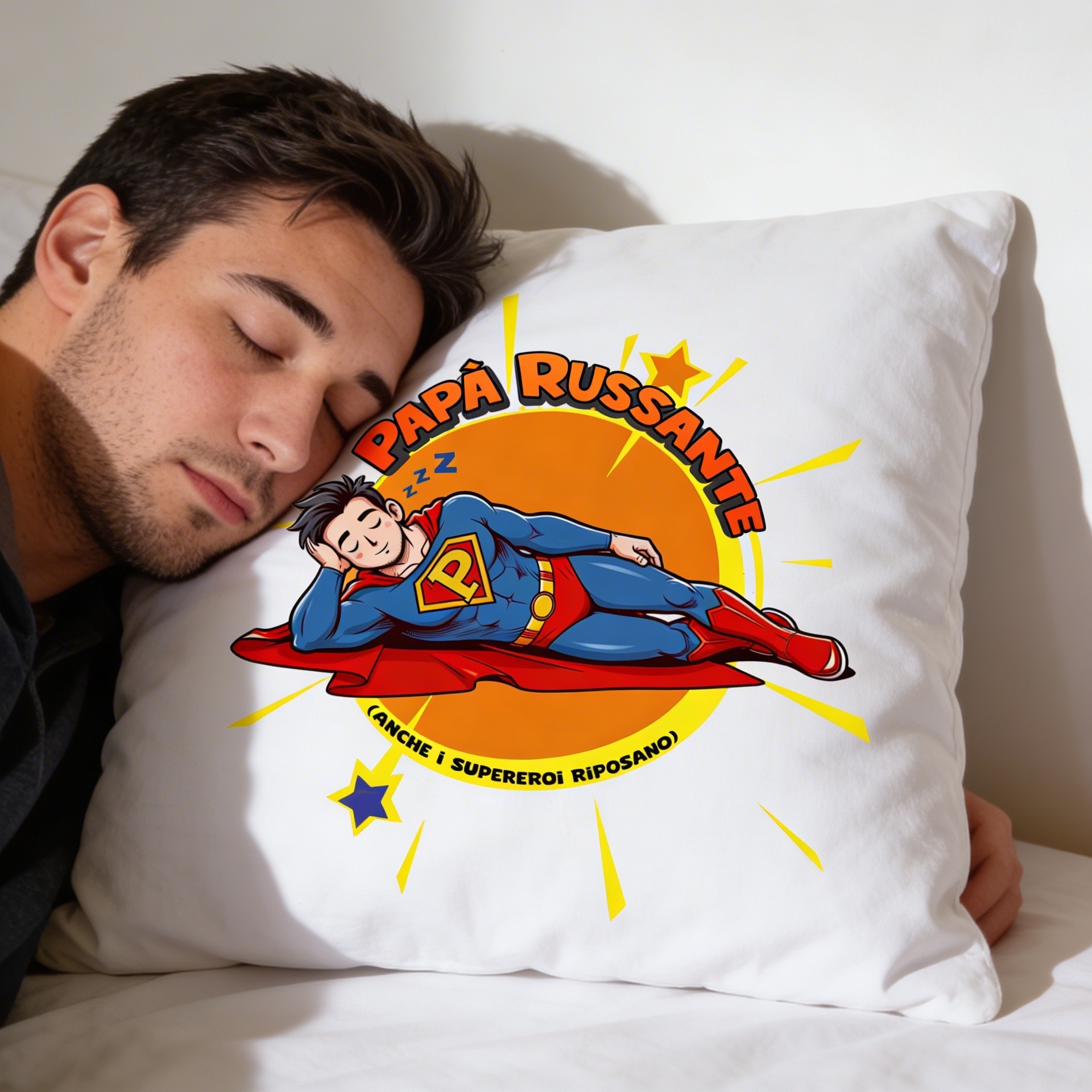 Il Cuscino Superman Papà Russante è il tributo perfetto al papà che durante il giorno vola da un impegno all’altro con la velocità dell’Uomo d’Acciaio, affronta ogni problema con la forza di chi non si arrende mai e protegge la famiglia con il cuore di Clark Kent — per poi atterrare sul divano e addormentarsi in tre secondi con un ronfio degno di Metropolis. Un mix irresistibile di ammirazione e tenerezza per quei papà instancabili che meriterebbe davvero un mantello, ma che si accontenta di un buon cuscino. Il design originale New Indastria reinterpreta il simbolo della S sul petto e il mantello rosso di Superman in chiave ironica e affettuosa, regalando un sorriso a tutta la famiglia. Ideale come regalo per la festa del papà, per un compleanno o per chi vuole aggiungere un tocco di superpotere al divano di casa.