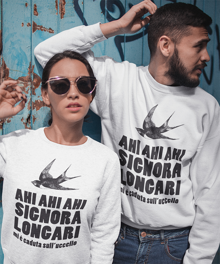 Felpa Girocollo Ahi Ahi Ahi Signora Longari Uccello New Indastria