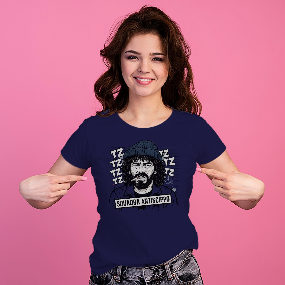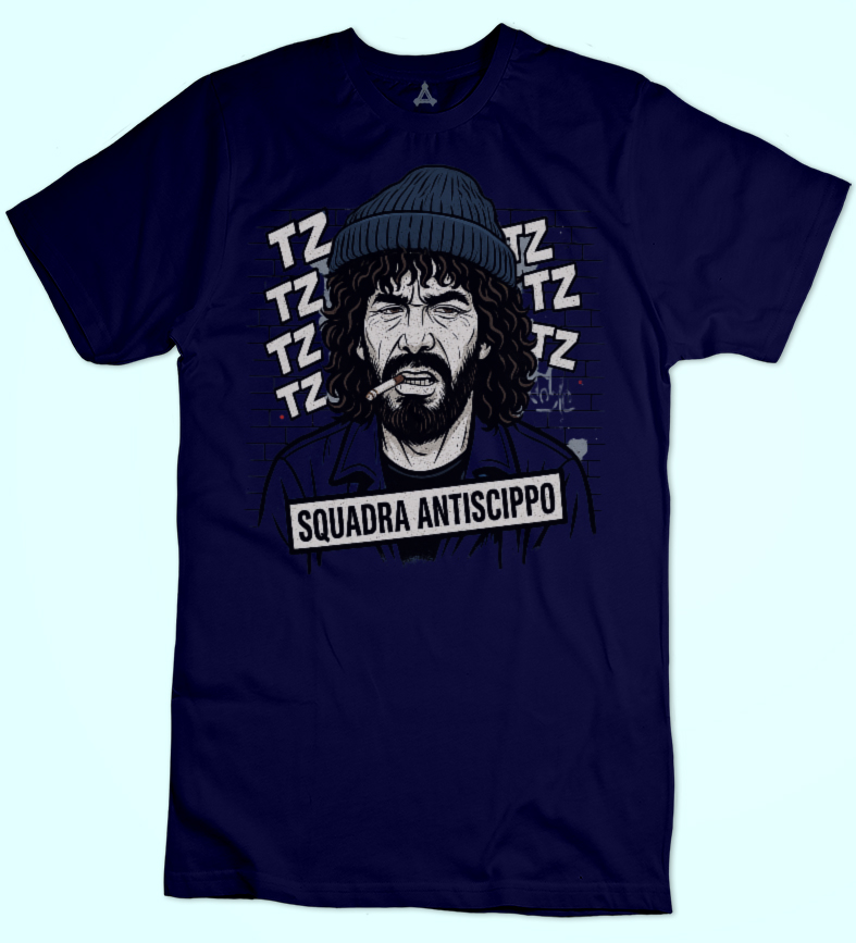 La T-shirt Er Monnezza è dedicata a uno dei personaggi più iconici del cinema di genere italiano, nato dalla penna di Dardano Sacchetti e dalla regia di Umberto Lenzi, e portato sullo schermo da un Tomas Milian in stato di grazia. Sergio Marazzi, detto Er Monnezza, compare per la prima volta nel poliziottesco Il trucido e lo sbirro, per poi tornare in La banda del trucido e La banda del gobbo, muovendosi in una Roma di periferia fatta di officine, mercati, piazzali e vicoli. È un ladruncolo di borgata, furbo, istintivo, a suo modo affezionato al quartiere e alla sua gente, con un linguaggio colorito e un look inconfondibile: capelli lunghi, barba, giubbotto vissuto, movimenti nervosi e una fisicità sempre sopra le righe. La voce di Ferruccio Amendola, che gli dona accento e ritmo romano, ha contribuito a trasformarlo in mito popolare. Negli anni, il personaggio è diventato simbolo di un certo cinema ruvido ma sincero, capace di mischiare azione, violenza e momenti di umanità improvvisa, con dialoghi che ancora oggi vengono citati e ripresi. Il design originale New Indastria rilegge Er Monnezza come se fosse il protagonista di una scheda tecnica di borgata: linee sporche, richiami a meccanica, ferrivecchi, scritte da muro e dettagli che ricordano i mercati di periferia. Indossare questa maglia significa portare addosso un pezzo di storia del poliziottesco e del cinema popolare romano, quel mondo fatto di banditi, poliziotti, doppi giochi e facce vere, che ha segnato un epoca e continua a vivere nelle retrospettive, nei passaggi televisivi notturni e nel culto degli appassionati.