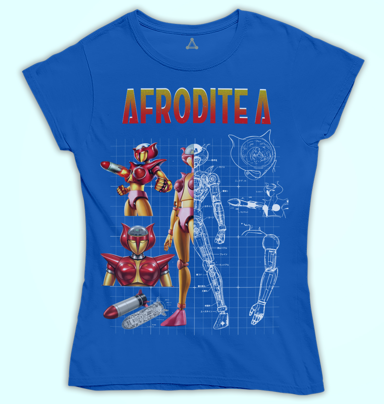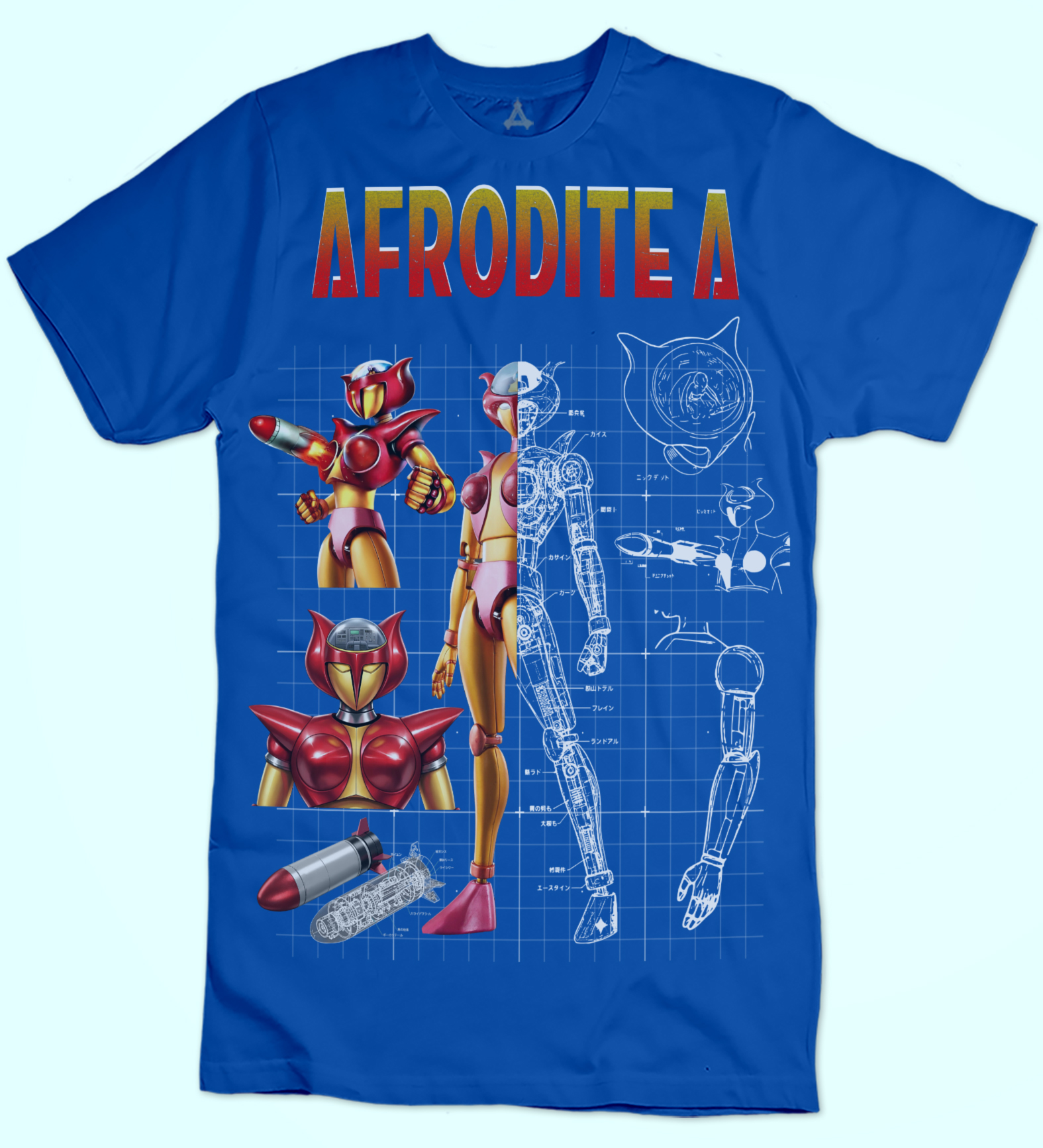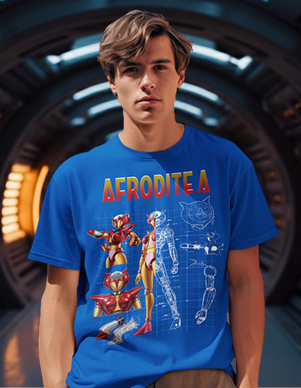 Afrodite A, apparsa nel 1972 nella serie Mazinga Z, è uno dei primi robot femminili dell’animazione mecha. Pilotata da Sayaka Yumi, Afrodite A supporta Mazinga Z nelle battaglie contro il dottor Hell grazie ai celebri Missili Tett*** (detti anche Oppai Missiles), arma iconica e innovativa per l’epoca. Pur meno potente di Mazinga Z, Afrodite A rappresenta un passo importante nella presenza femminile nei super-robot, mostrando coraggio e collaborazione sul campo. Una T-shirt dedicata celebra questo simbolo storico, riconoscibile e amatissimo dai fan della saga di Mazinga.